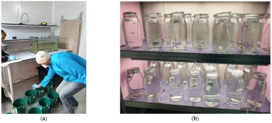 - ASTM. Conducting Acute Toxicity Tests on Materials with Fishes, Macroinvertebrates, and Amphibians. Book of Standards. Vol. 11. ASTM E729-96; American Society for Testing and Materials: West Conshohocken, PA, USA, 2014; pp. 1–22. [Google Scholar]