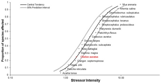 3.10. Sensitivity of C. auratus in Relation to Literature Data