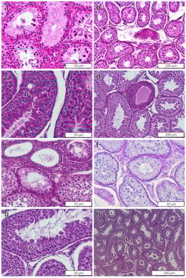 - Creasy, D.; Bube, A.; de Rijk, E.; Kandori, H.; Kuwahara, M.; Masson, R.; Nolte, T.; Reams, R.; Regan, K.; Rehm, S.; et al. Proliferative and nonproliferative lesions of the rat and mouse male reproductive system. Toxicol. Pathol. 2012, 40, 40s–121s. [Google Scholar] [CrossRef]