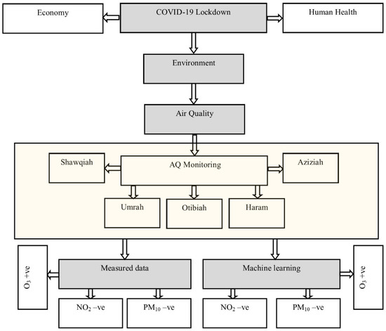 On 2 March 2020, the first positive case of the coronavirus was reported in the Kingdom of Saudi Arabia. Initially, three major steps were taken by the Kingdom of Saudi Arabia to minimise the spread of the virus: the deferral of the Umrah visit (4 March 2020), closing the educational institutions (8 March 2020), and stopping worldwide flight operations (9 March 2020). Using these measures, the Kingdom succeeded to slow down the spread of the pandemic but could not completely stop the spread; therefore, on 23 March 2020, a partial lockdown was enforced and on 25 March 2020, inter-provincial transportation was seized. Finally, a complete lockdown was enforced in the country on 6 April 2020. The lockdown was relaxed on 31 May 2020 in Makkah and partial activities in mosques, restaurants, malls, parks, and cafes were allowed [15,20]. Such lockdowns were implemented in many countries around the world, which resulted in improved environmental conditions including air quality.