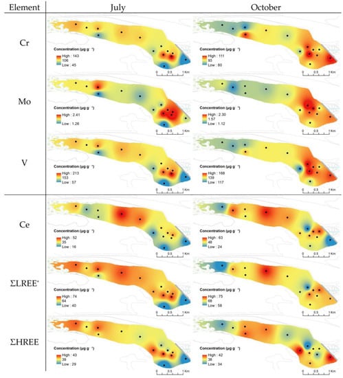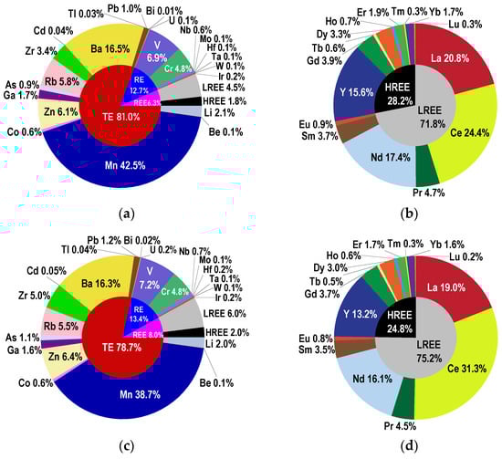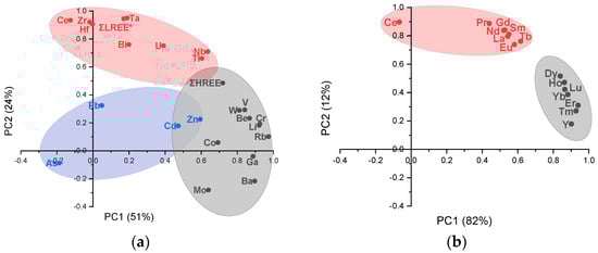 | Factor 2 (23.7%) | Ta, ΣLREEs *, Ce, Hf, Zr, Bi, U; Nb, Tl. | Factor 2 (11.6%) | Ce, Pr, Gd, Nd, Sm, La, Tb; Eu, Dy. |