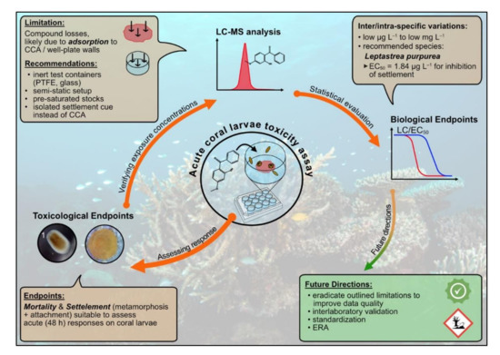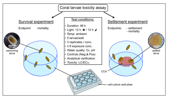 Miller, I.B.; Moeller, M.; Kellermann, M.Y.; Nietzer, S.; Di Mauro, V.; Kamyab, E.; Pawlowski, S.; Petersen-Thiery, M.; Schupp, P.J. Towards the Development of Standardized Bioassays for Corals: Acute Toxicity of the UV Filter Benzophenone-3 to Scleractinian Coral Larvae. Toxics 2022, 10, 244. https://doi.org/10.3390/toxics10050244
