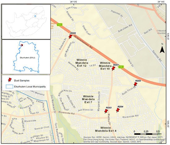 Mugudamani I, Oke SA, Gumede TP. Influence of Urban Informal Settlements on Trace Element Accumulation in Road Dust and Their Possible Health Implications in Ekurhuleni Metropolitan Municipality, South Africa. Toxics. 2022; 10(5):253. https://doi.org/10.3390/toxics10050253