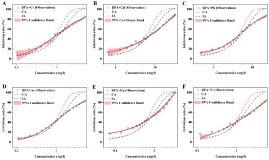 3.3. Toxicities of Mixtures of BPA and Heavy Metals Predicted by CA and IA Models