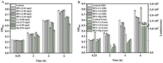 Chicago/Turabian StyleYang, Jun, Anqi Liao, Shulin Hu, Yiwen Zheng, Shuli Liang, Shuangyan Han, and Ying Lin. 2022. "Acute and Chronic Toxicity of Binary Mixtures of Bisphenol A and Heavy Metals" Toxics 10, no. 5: 255. https://doi.org/10.3390/toxics10050255