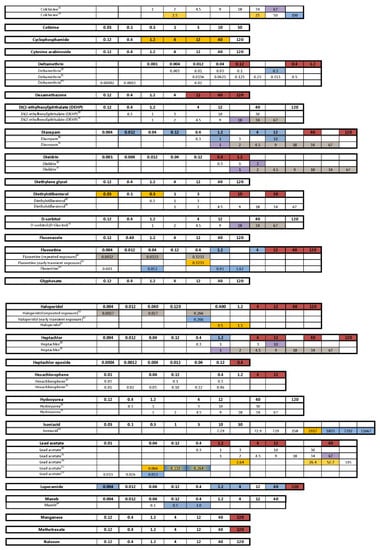 - Dórea, J.G. Exposure to environmental neurotoxic substances and neurodevelopment in children from Latin America and the Caribbean. Environ. Res. 2021, 192, 110199. [Google Scholar] [CrossRef]