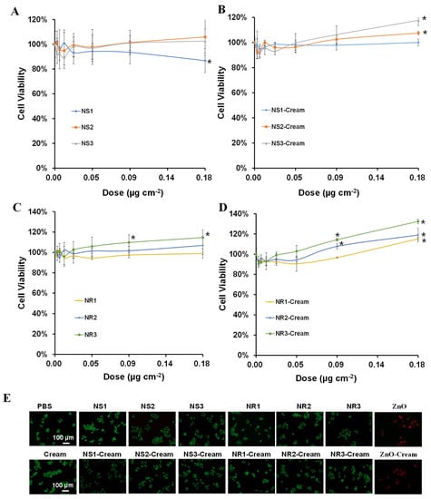 −1) of Au NMs or Au-Cream (equivalent to Au content) for 24 h. ZnO nanoparticles in the range of 0–200 μg mL