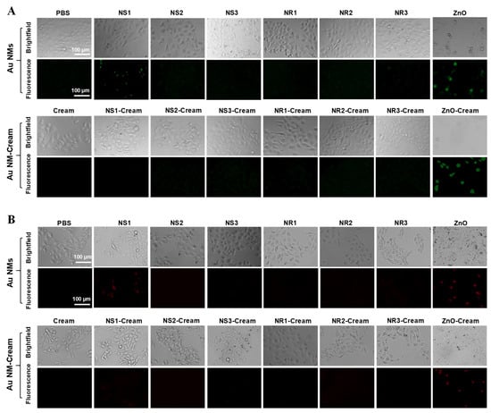 −2 Au NSs or NRs (equivalent to Au content), HaCaT cells were washed with PBS three times and stained with 1 μmol L