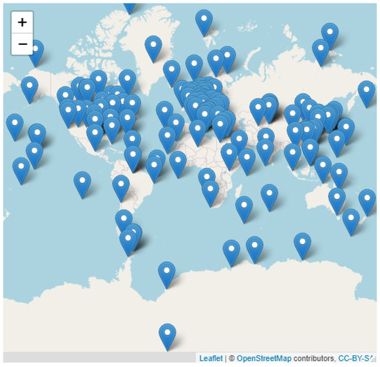 Location of stations considered in the evaluation of re-analysis CO2 provided by CAMS. The sta-tion name and its description can be accessed at the hypergraph link below (https://rpubs.com/danilocustodio/874276).