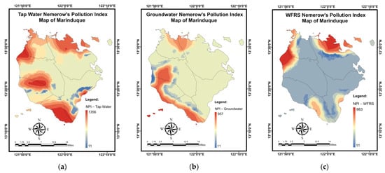 The detected elements in the water samples were assessed and compared to the Philippine National Standards for Drinking Water (PNSDW) 2017 [28]. A HMM pollution assessment utilizing several indices such as the MPI, NPI, non-CR Index, and CR Index was implemented in this study to comprehensively assess the degree of pollution in the DW considering HMMs.