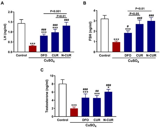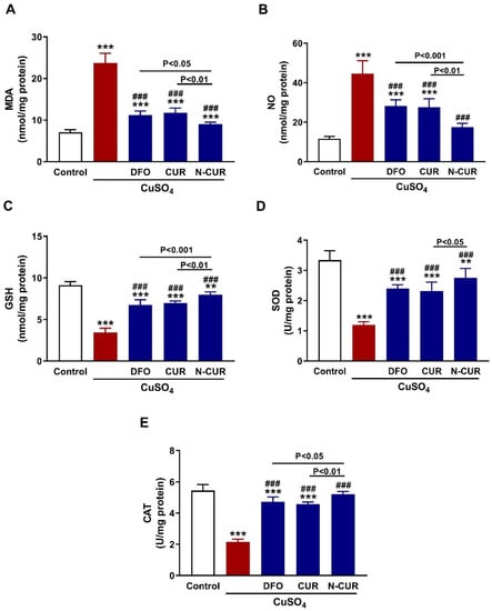 3.3. N-CUR and CUR Attenuate Testicular Oxidative Stress in CuSO4-Administered Rats