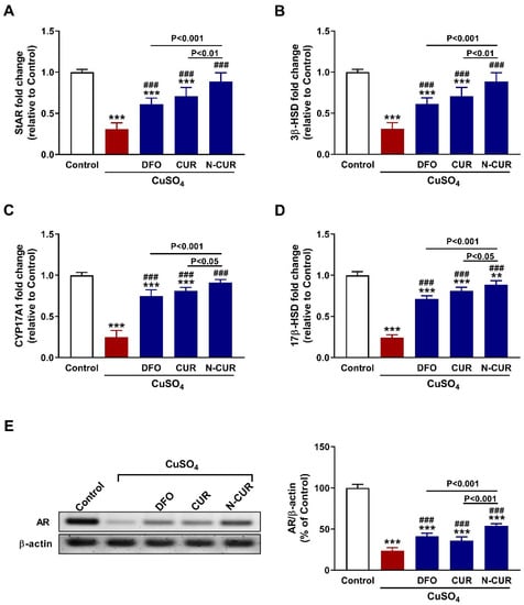 3.2. N-CUR and CUR Upregulate Steroidogenesis and AR in CuSO4-Administered Rats