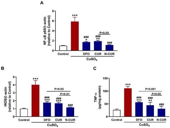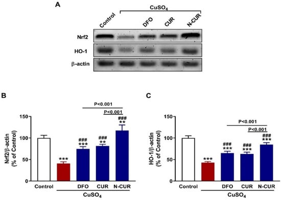 3.4. N-CUR and CUR Upregulate Nrf2/HO-1 Signaling in CuSO4-Administered Rats