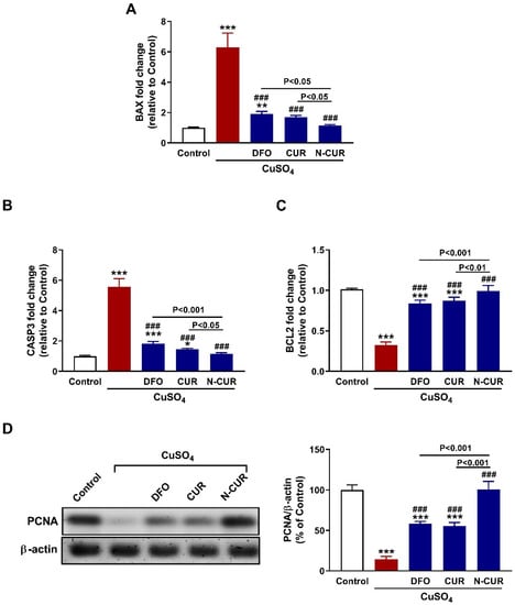 3.6. N-CUR and CUR Prevent Testicular Apoptosis in CuSO4-Administered Rats