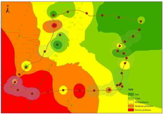 NPI is used to evaluate the overall situation of PTEs in soils. This index considers not only the effects of PTEs with high concentrations on the environment but also the impact of each PTE on the environmental quality by analyzing its average value. NPI is calculated by the following equation [34]:
