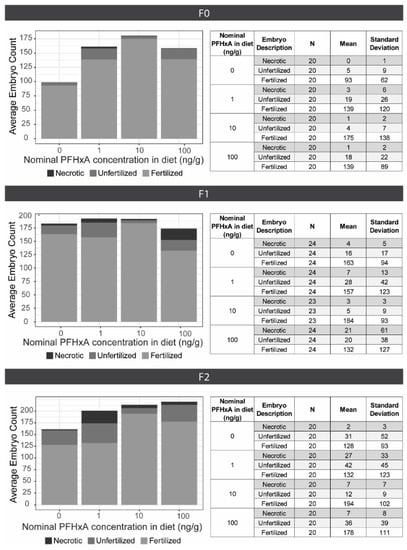 The absence of apical morphometric effects in the F0 generation was consistent with other PFHxA dietary exposures in adult trout (