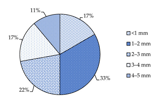 From the data available in the literature, we can notice that most of the studies conducted in the Mediterranean Sea that focused on microfibers pollution investigated microfibers with a length ranging between 1 and 2 mm (Figure 4).