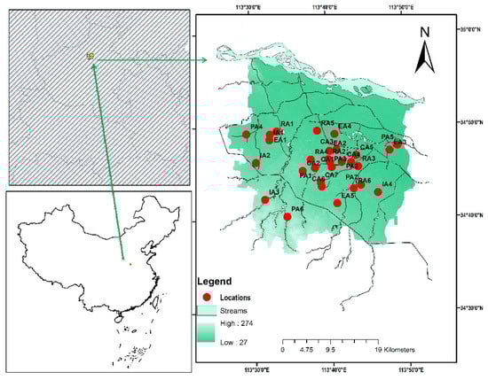 Zhengzhou, the capital of Henan Province, which is located at 34°45′50.4″ N, 113°41′2.4″ E, is depicted in Figure 1. It is an important economic, transportation, and logistical hub in central China. It is the province’s major city, lying in the enormous metropolis of the Central Belt. The city is at the base of the Funiu Hills in the northern part of the country. It is bounded to the west by mountainous terrain and to the east by intermediate and lowland topography. It covers 1011.3 km2 of land. The average amount of rain that falls in a year is 629.7 mm, and most of it falls in the summer.
