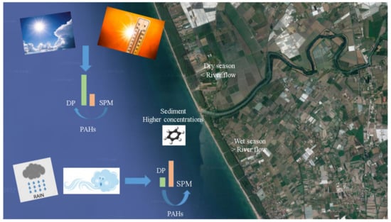 - Montuori, P.; De Rosa, E.; Di Duca, F.; Provvisiero, D.P.; Sarnacchiaro, P.; Nardone, A.; Triassi, M. Estima-tion of Polycyclic Aromatic Hydrocarbons Pollution in Mediterranean Sea from Volturno River, Southern It-aly: Distribution, Risk Assessment and Loads. Int. J. Environ. Res. Public Health 2021, 18, 1383. [Google Scholar] [CrossRef]