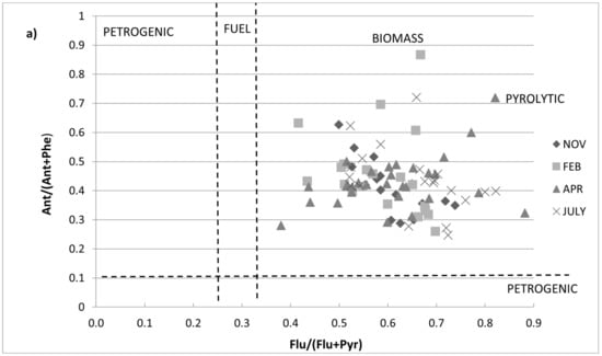 - Tobiszewski, M.; Namieśnik, J. PAH diagnostic ratios for the identification of pollution emission sources. Environ. Pollut. 2012, 162, 110–119. [Google Scholar] [CrossRef]
