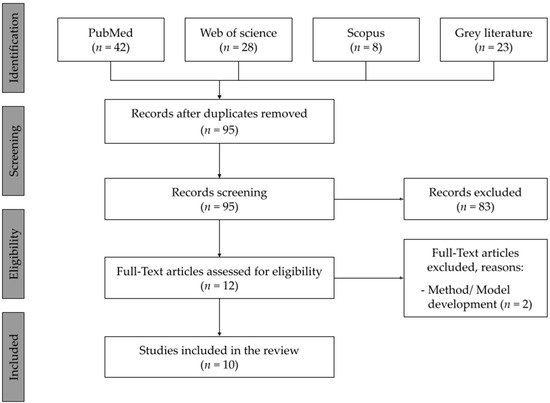 - Page, M.J.; McKenzie, J.E.; Bossuyt, P.M.; Boutron, I.; Hoffmann, T.C.; Mulrow, C.D.; Shamseer, L.; Tetzlaff, J.M.; Akl, E.A.; Brennan, S.E.; et al. The PRISMA 2020 Statement: An Updated Guideline for Reporting Systematic Reviews. BMJ 2021, 372, n71. [Google Scholar] [CrossRef]