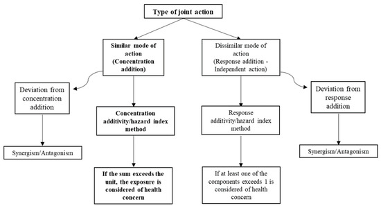 Flowchart representing the types of joint action (similar and dissimilar) and the respective applicable methods in mixtures risk assessment.