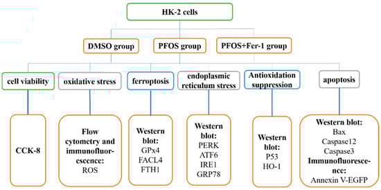 In this study, we chose human proximal tubule epithelial cells (HK-2) as our subject of study and aimed to investigate the role of ferroptosis in the toxic effect of PFOS on HK-2 cells and to elucidate the pathways of PFOS-induced HK2 cell injury and death to provide new insights into the nephrotoxicity of PFOS.