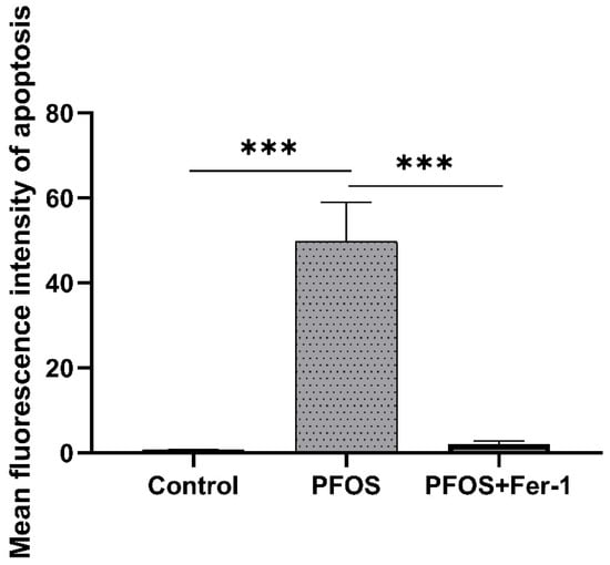 Comparison of apoptosis fluorescence intensity in HK-2 cells exposed to PFOS or/Fer-1. Data are expressed as mean ± SD (n = 3). (*** p < 0.001).