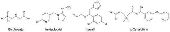 - Sheets, L.P. Chapter 95—Imidacloprid: A Neonicotinoid Insecticide. In Hayes’ Handbook of Pesticide Toxicology, 3rd ed.; Krieger, R., Ed.; Academic Press: New York, NY, USA, 2010. [Google Scholar]