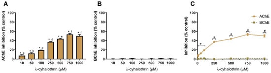 - Kumar, A.; Rai, D.K.; Sharma, B.; Pandey, R.S. λ-cyhalothrin and cypermethrin induced in vivo alterations in the activity of acetylcholinesterase in a freshwater fish, Channa punctatus (Bloch). Pestic. Biochem. Physiol. 2009, 93, 96–99. [Google Scholar] [CrossRef]