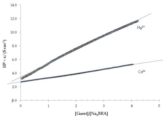 3.3. Complexation of Na4BRA with either Cd2+ or Hg2+