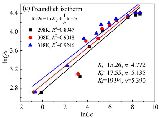 3.3.4. Effect of Temperature and Adsorption Isotherm