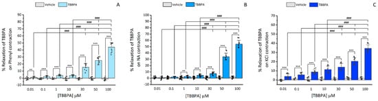 | K+ channels blockage + TBBPA | *** | *** | *** | *** | *** | *** | *** | |||