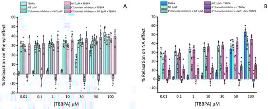 | K+ channels inhibitors + Nif 1 μM + TBBPA | n.s | n.s | n.s | n.s | n.s | n.s | n.s | |||