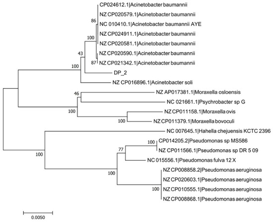 Phylogenetic tree of Acinetobacter baumannii DP-2 based on 16S rDNA sequences.
