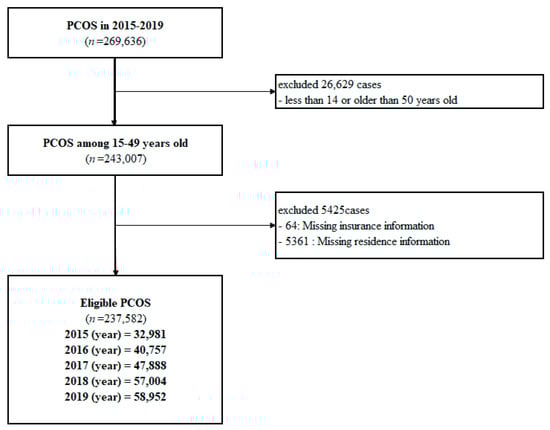 - Kim, J.H.; Jung, M.H.; Hong, S.H.; Moon, N.L.; Kang, D.R. Age-adjusted prevalence and characteristics of women with polycystic ovarian syndrome in Korea: A nationwide population-based study (2010–2019). Yonsei Med. J. 2022, 63, 794–798. [Google Scholar] [CrossRef]
