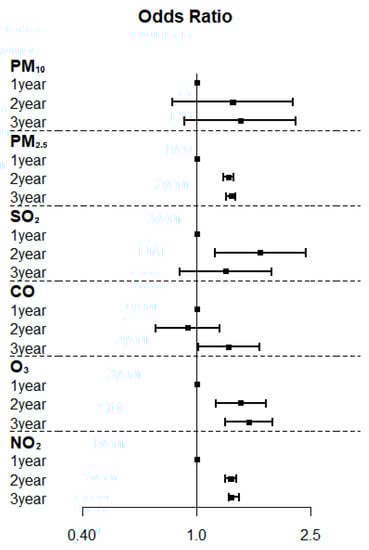 3.3. Effects of Exposure Duration of Air Pollutants on Polycystic Ovarian Syndrome Risk