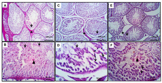 - Kerr, J. Spontaneous degeneration of germ cells in normal rat testis: Assessment of cell types and frequency during the spermatogenic cycle. Reproduction 1992, 95, 825–830. [Google Scholar] [CrossRef] [PubMed][Green Version]