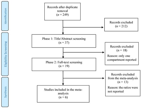 Finally, 249 publications were initially gathered from PubMed and SCOPUS after duplicate removal, among which 212 did not match the selection criteria and thus were excluded based on title and abstract (Figure 1). The remaining 37 references were evaluated based on the full text, of which 18 studies were considered eligible articles. A final list of 19 relevant articles reporting concentrations of POPs in adipose tissue and serum was included, of which 6 provided comparable metrics to conduct a meta-analysis (Table 2).