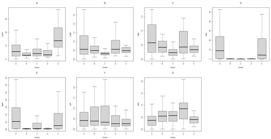 | Characteristics/ Students from Schools | All (n = 257) | A (n = 60) | B (n = 40) | C (n = 59) | D (n = 38) | E (n = 60) | p a |