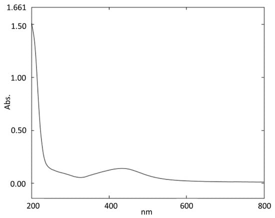 The absorption band at 450 nm indicated the formation of silver nanoparticles mediated by Bauhinia purpurea gum (Figure 1). Samrot et al. [13] produced silver nanoparticles using gum of Araucaria heterophylla, where the absorbance peaks of the silver nanoparticles were seen between 420 nm and 450 nm.