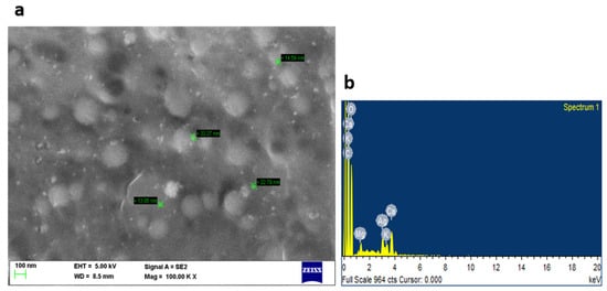 The silver nanoparticle formation was examined by UV–Vis spectrophotometer (Shimadzu, UV 3600 PLUS, Kyoto, Japan). The Fourier—Transform Infrared Spectroscopy (FT—IR) measurements were done using Shimadzu, IRTRACER 100, Kyoto, Japan. Scanning Electron Microscopy (SEM) and elemental analysis was performed by using Zeiss Ultra Plus, Oberkochen, Germany. The shape of the nanoparticles was analyzed using transmission electron microscopy (TEM) (FEI, Titan Themis 300 kV, Hillsboro, OR, USA). The X—Ray powder Diffraction (XRD) spectra were recorded (PANalytical Corporation, X’Pert, Almelo, Netherlands) along with its stability via Zeta Potential analysis (ZETASIZER Nano Series ZSP; Malvern Instruments, Worcestershire, UK).