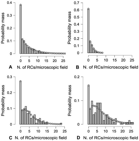 - Bliss, C.I.; Fisher, R.A. Fitting the negative binomial distribution to biological data. Biometrics 1953, 9, 176. [Google Scholar] [CrossRef]