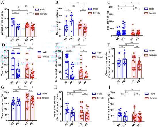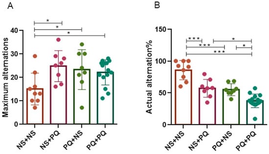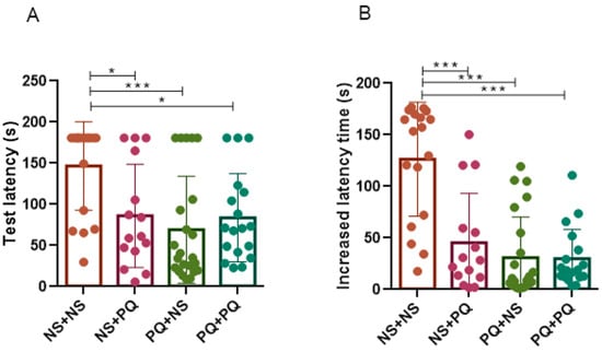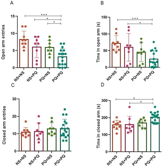 - NS + PQ group (treated with saline at PN period and with PQ at adulthood, n = 8–15);