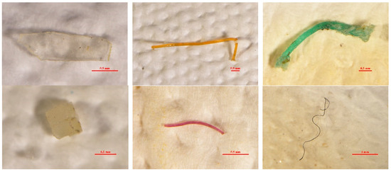 The samples were observed using a stereo microscope to select the suspected plastic fragments, particles, etc., which were photographed using a stereo microscope with a photo-camera system (Nikon SMZ25, Nikon Corporation, Yokohama, Japan), and information on the physical characteristics of the plastics, such as shape, color, and size, was observed and documented using software (NIS-Elements D 4.50.00, Nikon Corporation, Yokohama, Japan) that was used in conjunction with the camera system. We used imageJ (1.5) software to first record the scale of the photographic process and later calculated the size of the microplastic within a fixed pixel by converting between pixel and scale. The chemical composition of the samples was analyzed using a Fourier transform infrared microspectrometer (Nicolet iN 10 MX, Thermo Fisher, Waltham, MA, USA) transmission mode-MCT detector.