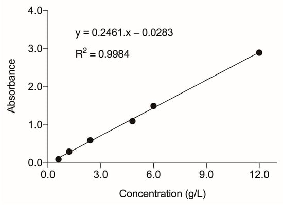 The absorbance measured for DE was 0.192, and that for CE was 0.342. Thus, the concentration of the hair dye mixture was determined by the analytical curve (Figure 3), resulting in values of 1.505 g/L for CE and 0.895 g/L for DE.