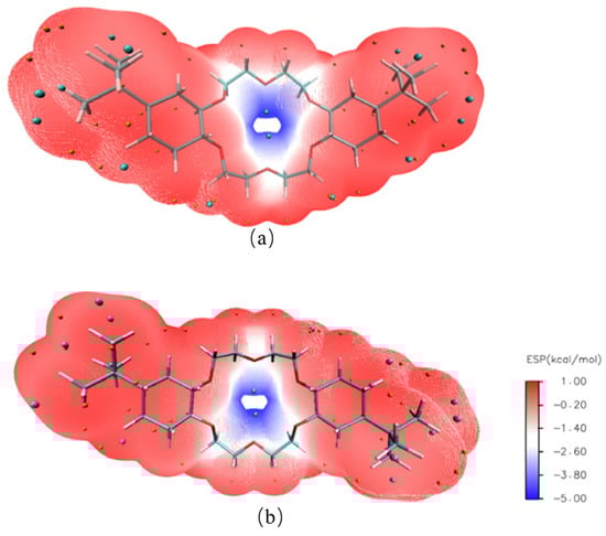ESP results of 4,4′-di-tert-butylcyclohexane-18-crown-6 (a) and 4,5′-di-tert-butylcyclohexane-18-crown-6 (b).