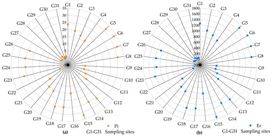 Pi (a) and PERI (b) evaluation results of As contamination in the studied soil.