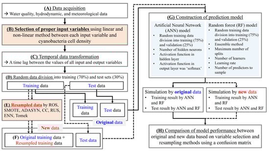 - Kim, J.H.; Shin, J.; Lee, H.; Lee, D.H.; Kang, J.; Cho, K.; Lee, Y.; Chon, K.; Baek, S.; Park, Y. Improving the performance of machine learning models for early warning of harmful algal blooms using an adaptive synthetic sampling method. Water Res. 2021, 207, 117821. [Google Scholar] [CrossRef] [PubMed]