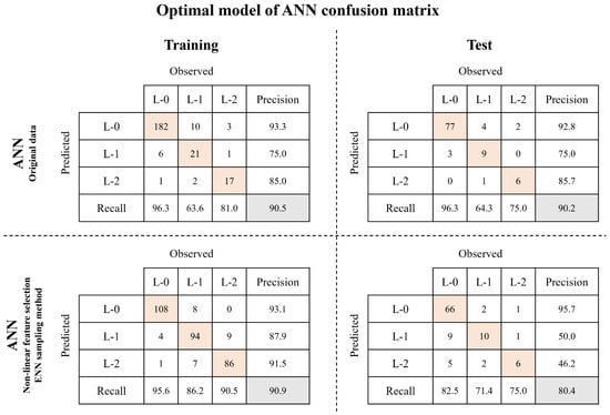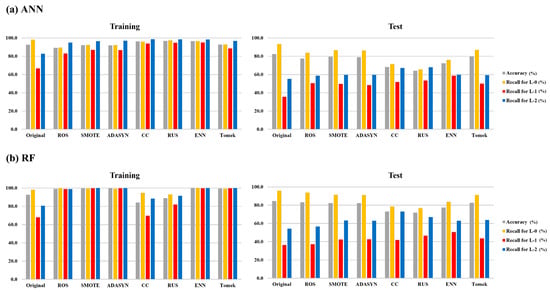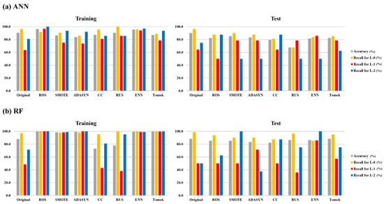 - In the RF model, the accuracy of the model with the resampling method demonstrated the highest performance, whereas in the ANN model, the predictive performance of the model incorporating both feature selection and resampling methods appeared to be superior.